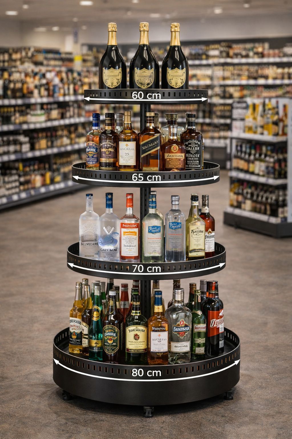 סטנד תצוגה 4 מדפים עגולים